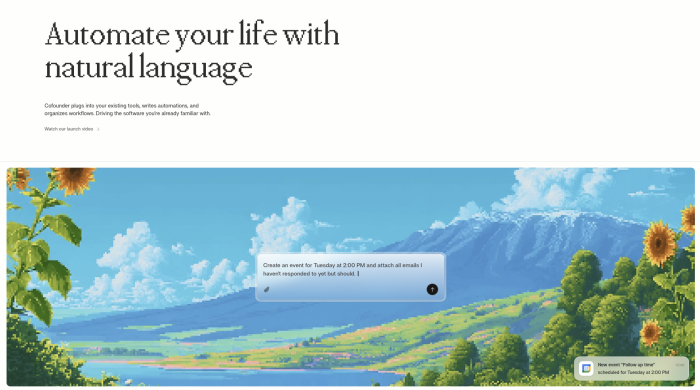 テキストで指示をするだけでワークフロー(業務)を整理・自動化してくれるワークフローオートメーションプラットフォーム。例えば、「毎日のスケジュールを要約」や「このスタートアップを分析」、「現在ある情報から履歴書を作成」などと指示するだけで、SlackやNotion、Linear、メール、カレンダーをはじめとする既存ツールにプラグインし、作業を自動化してくれる仕組み。