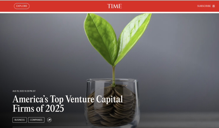 また8月には、有力経済誌TIMEが発表した「America’s Top Venture Capital Firms of 2025」に選ばれました。