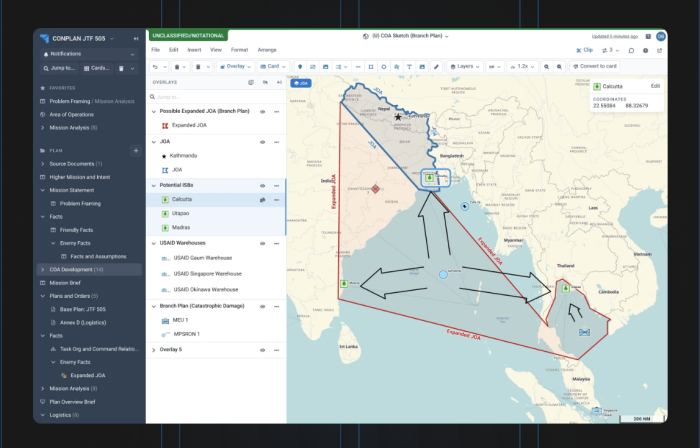 軍事作戦の実行を迅速・効率化するオペレーションプラットフォーム。