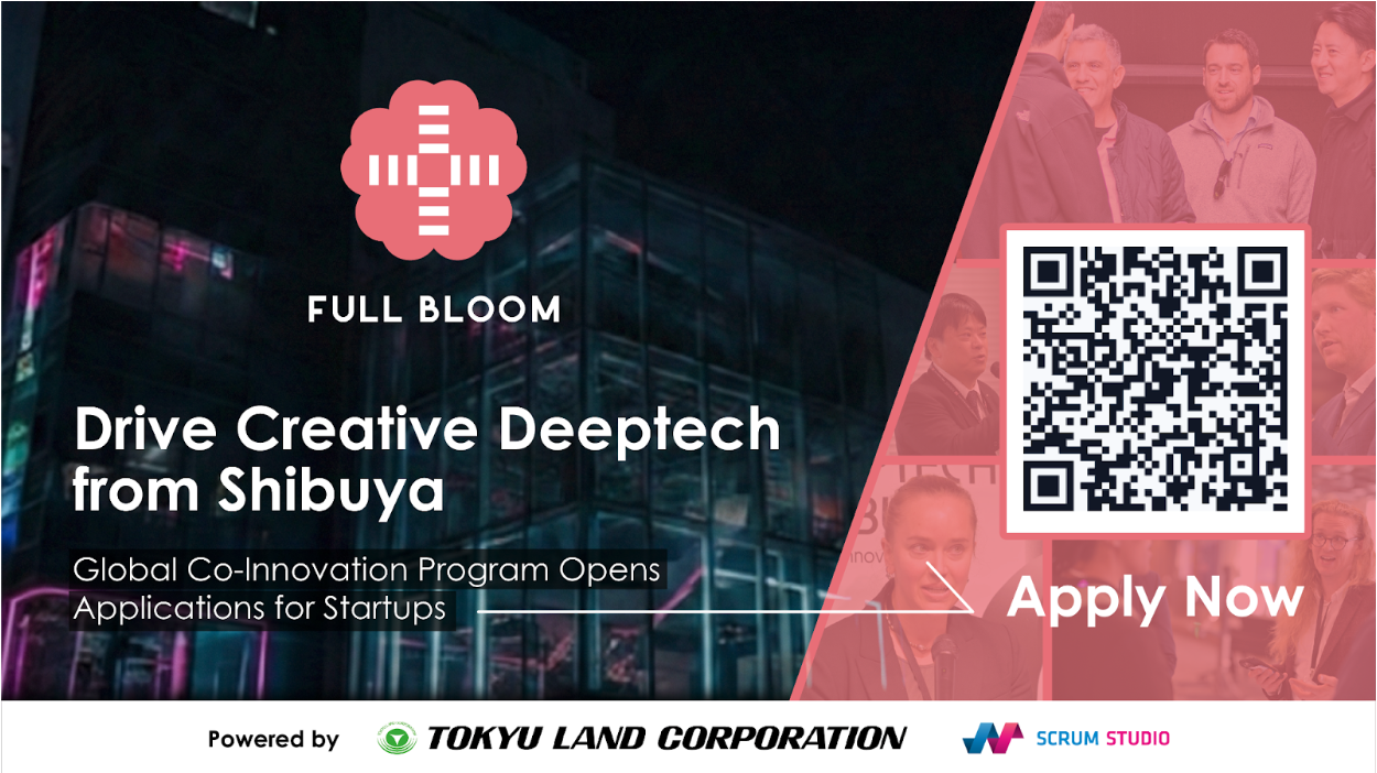 東急不動産株式会社(本社:東京都渋⾕区、代表取締役社⻑:星野浩明、以下「東急不動産」)とスクラムスタジオ株式会社(本社:東京都港区、代表取締役社⻑:髙橋正⺒、以下「スクラムスタジオ」)が、渋谷サクラステージ(東京都渋谷区)内「SAKURA DEEPTECH SHIBUYA(以下「SDS」)」で運営する事業共創プログラムの第二期を「Full Bloom」と題し、スタートアップの募集を開始しました。
