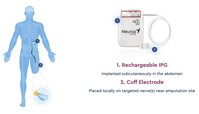 下肢切断後の慢性的な痛み(幻肢痛や断端痛など)を緩和、コントロールする医療機器を開発するメディカルテックスタートアップ。FDA(米国食品医薬品局)認可済みで、充電式バッテリーを内蔵した埋め込み型パルス発生器「Altius」は、コントローラーで損傷した神経に直接電気信号を送ることで、オピオイドを使用せずにリアルタイムに痛みを和らげることが可能という。