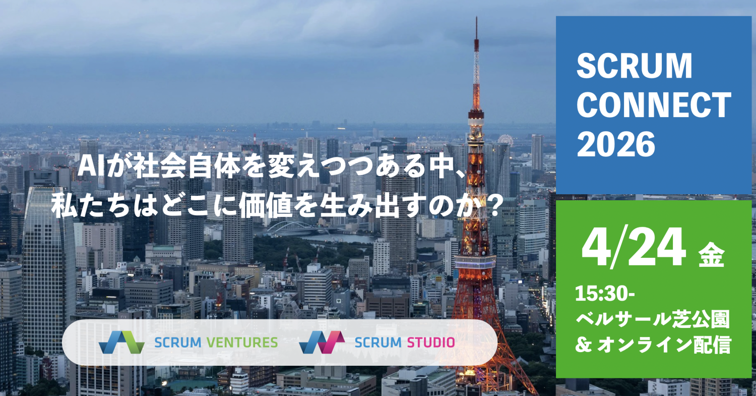 スクラムベンチャーズとスクラムスタジオ株式会社は、4月24日金曜日にSCRUM CONNECT 2026を開催します。テクノロジーだけでは持続的な変化は生まれない――人が集い、挑戦が循環する“場”をどう設計するのか。スクラムベンチャーズが現在取り組んでいる「テクノロジー」「まち」「カルチャー」の事例をご紹介するとともに、海外からスペシャルゲストを招き、先進事例を共有いただきます。